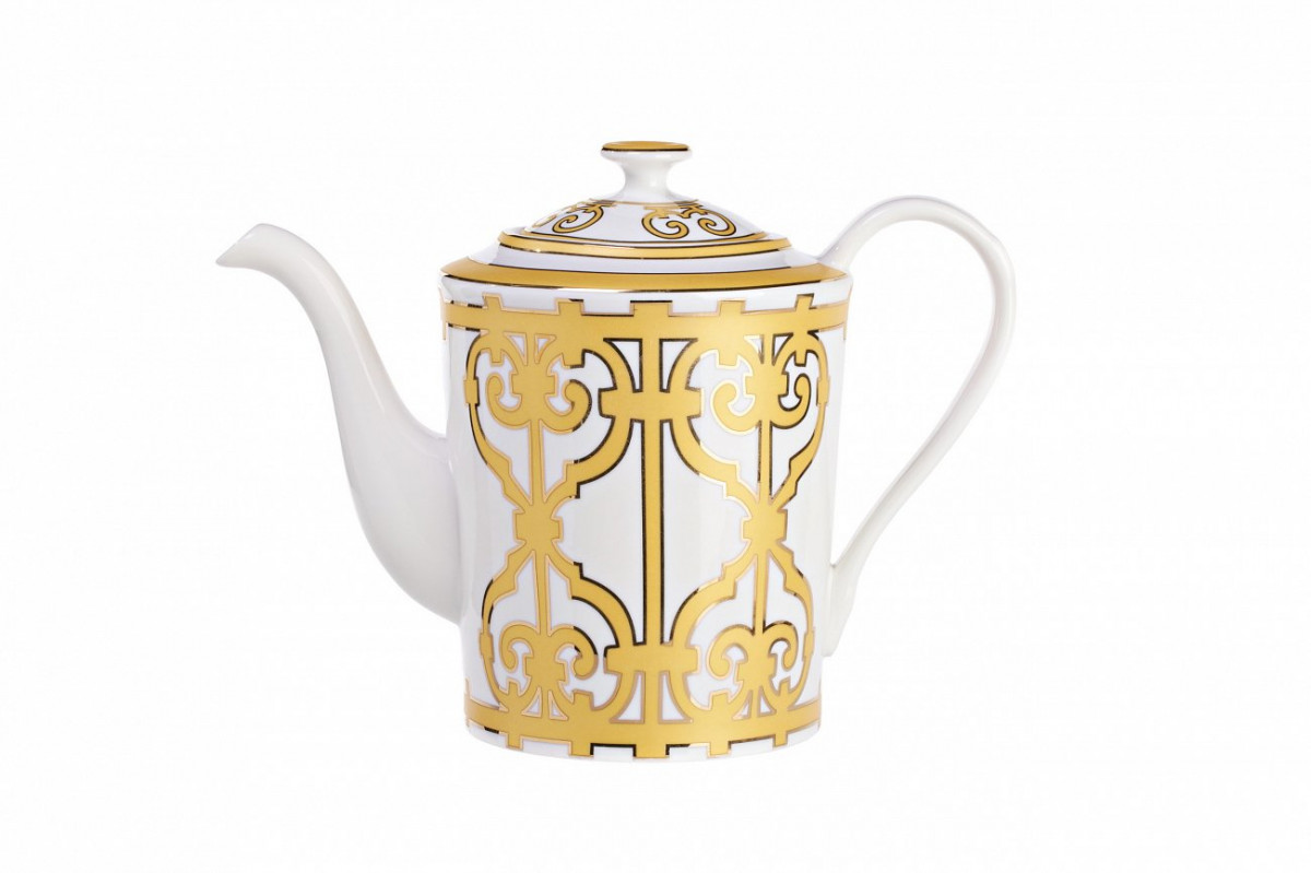Восхитительный заварочный чайник в стиле модерн moderne коллекции «Marbella» украшен изысканным геометрическим узором золотистого цвета. Сочетание белоснежного фарфора и золотой отделки смотрится торжественно и благородно, свидетельствуя о безупречном вкусе владельца сервиза. Вы можете приобрести заварочный чайник отдельно, а также с другими предметами серии.