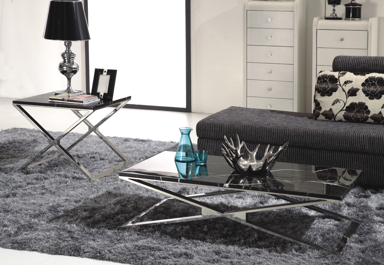 Стальное основание, столешница из искусственного мрамора темно-серого цвета с белыми прожилками арт.5135-5