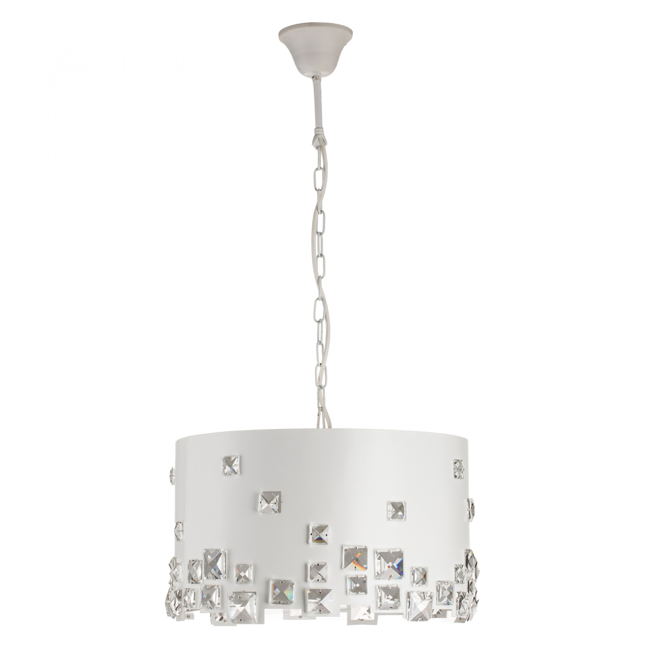 Абажур железо, окрашенное в белый цвет, основание хромированное железо, хрусталь, предназначена для использования со светодиодными лампами, лампы не включены в комплект